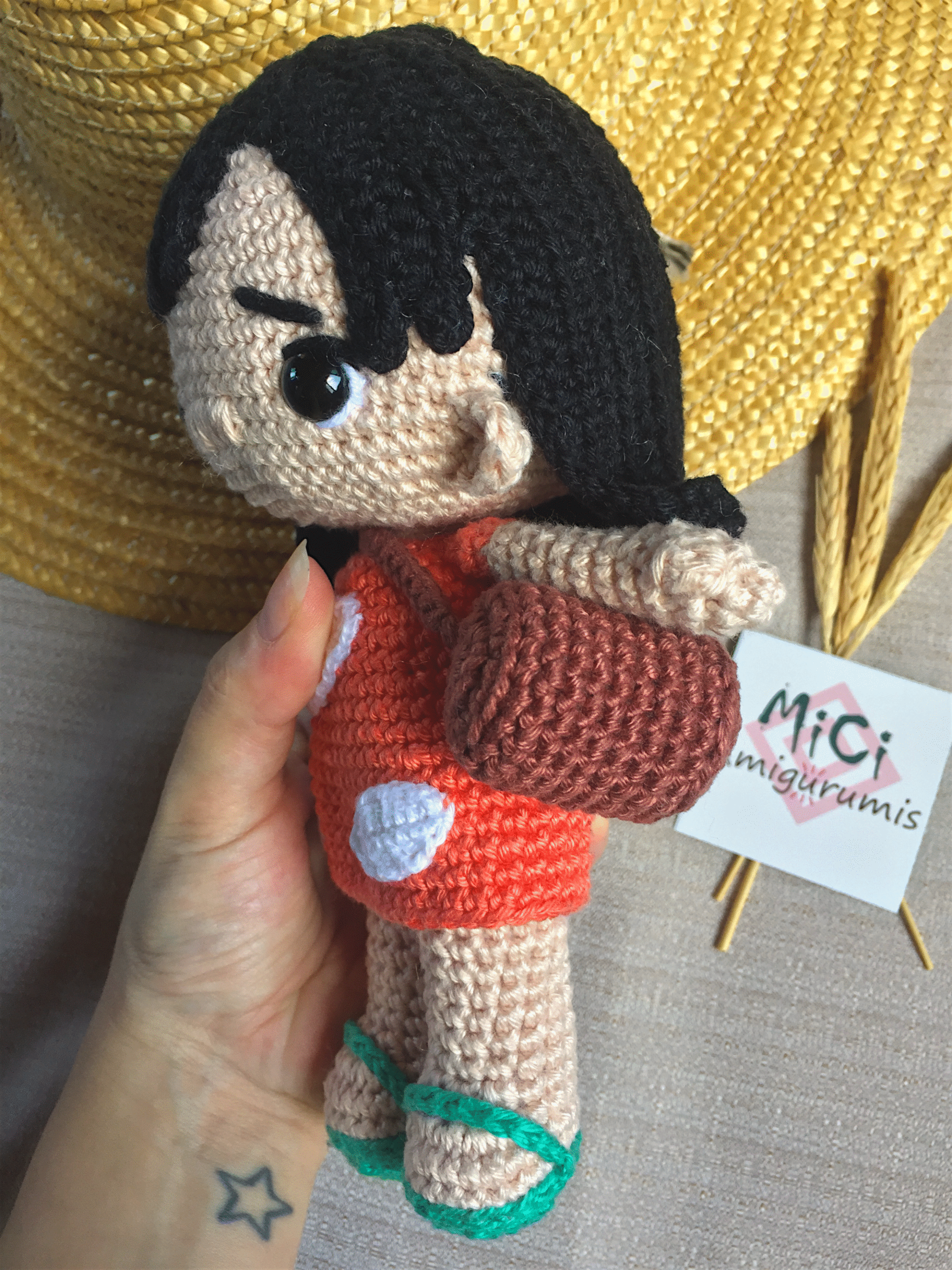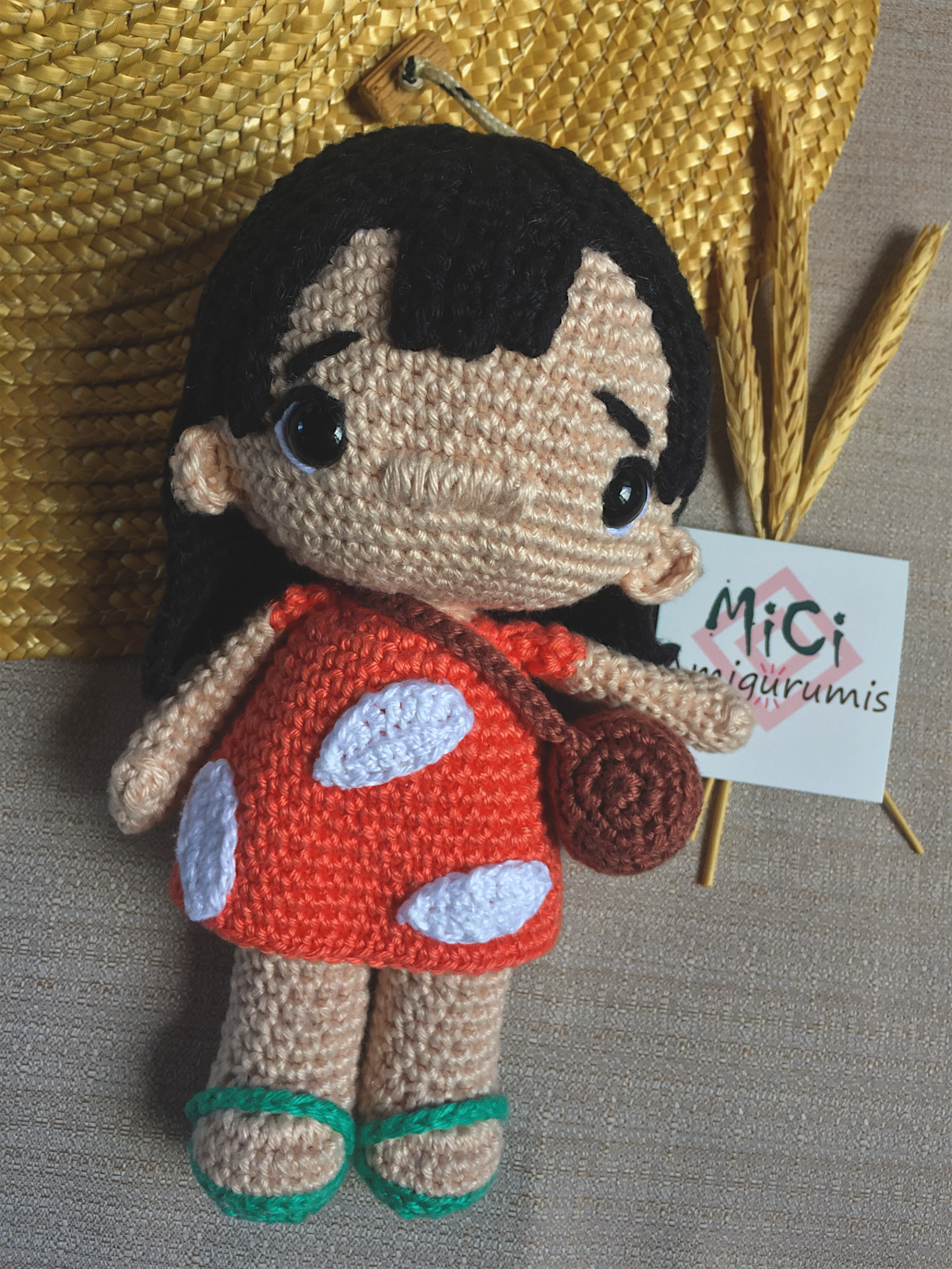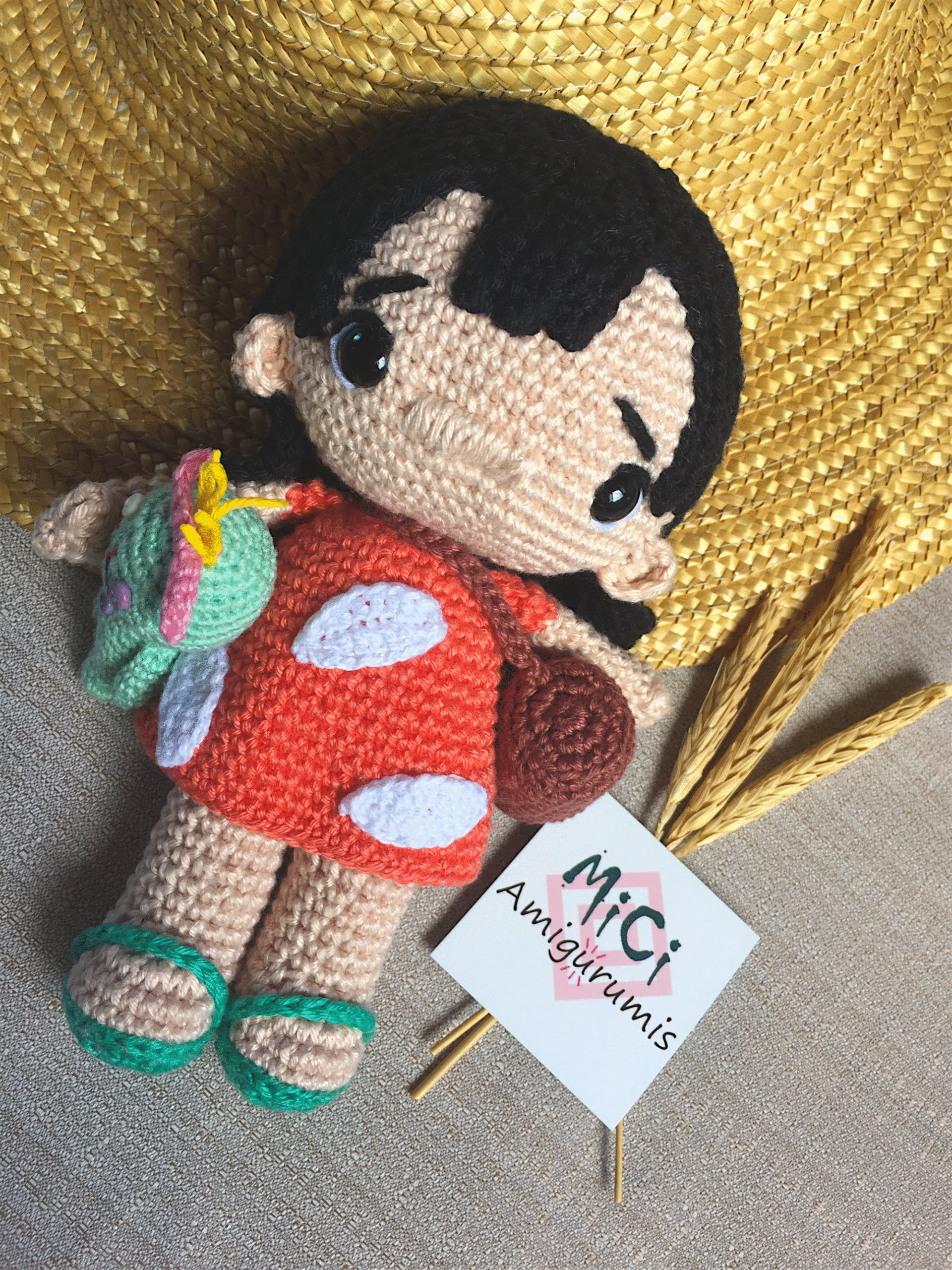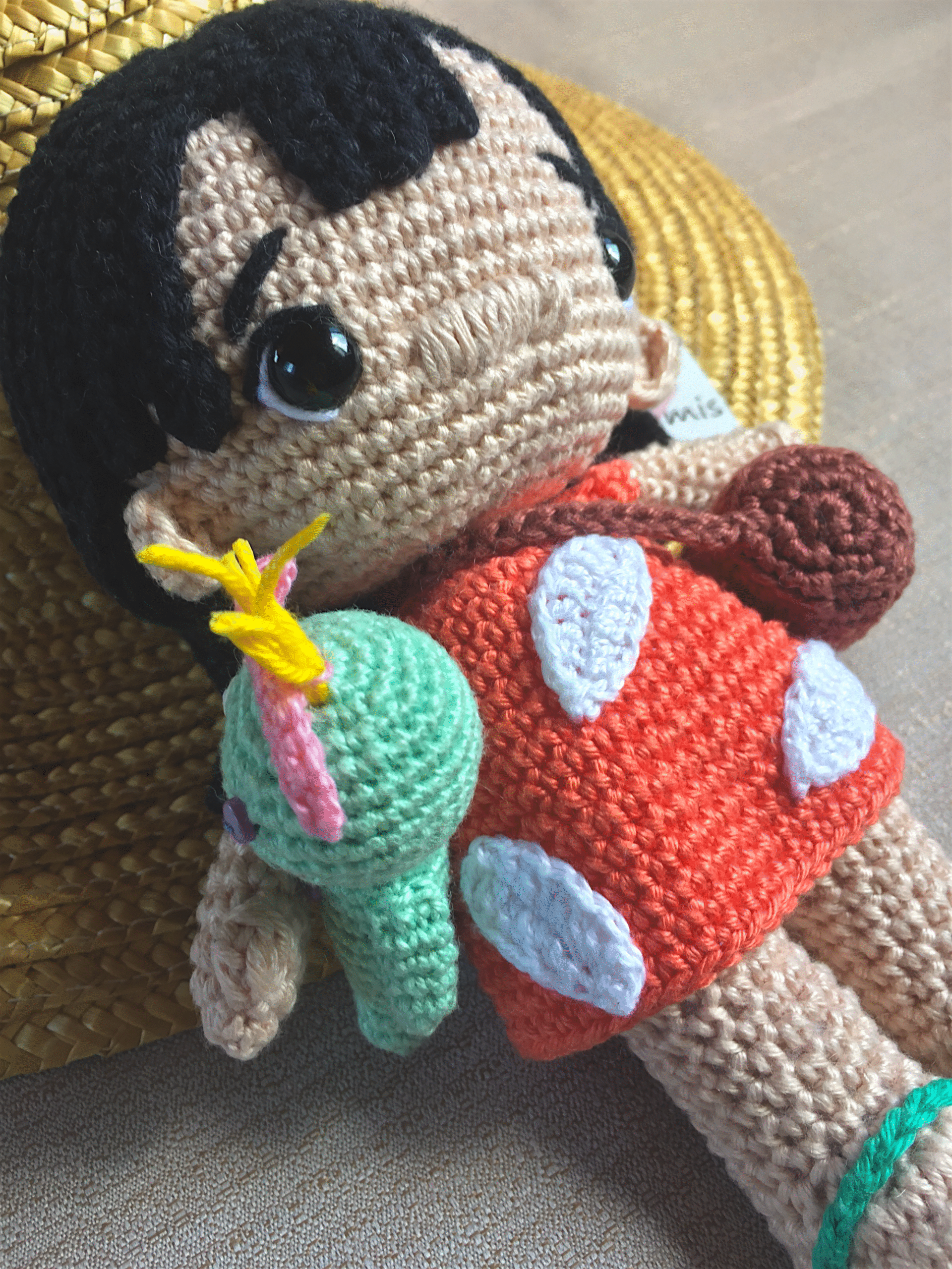 Boneca de crochê Lilo e sua amiga Shepa. Os olhos possuem travas de segurança.